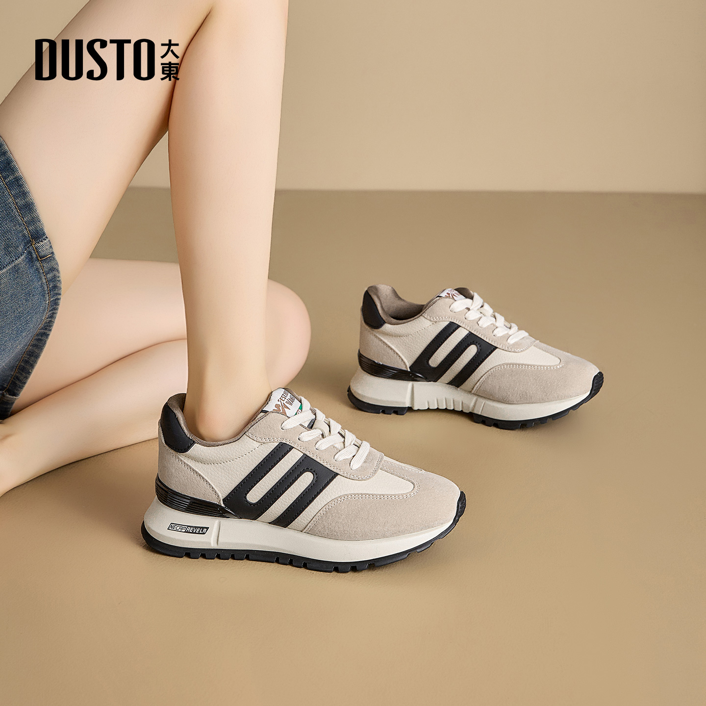 天猫大东休闲运动鞋女鞋2025年冬季新款平底高跟圆头厚底德训风阿甘鞋