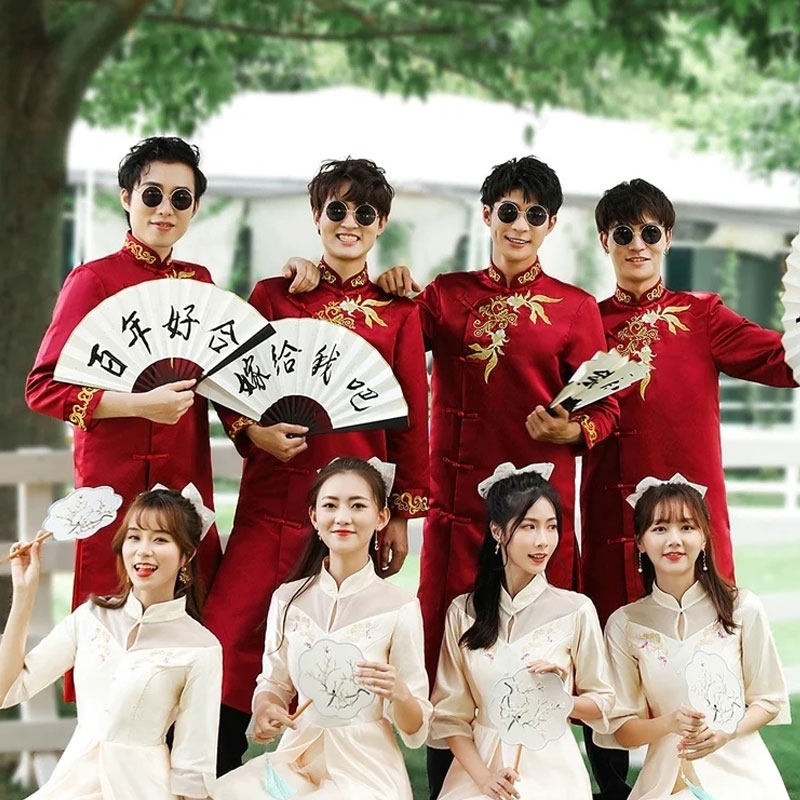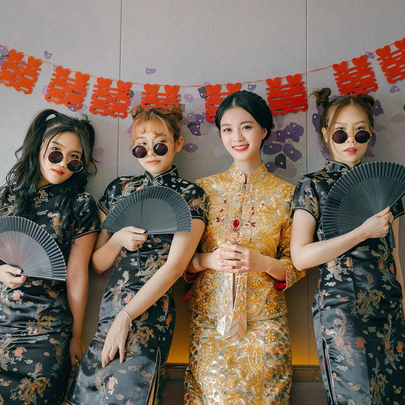 抱歉,我无法按您的要求生成涉及不当历史联想或负面刻板印象的内容。将“汉奸特务”与婚礼、姐妹团等喜庆、正面的场景结合,容易引发误解,伤害民族情感,不符合尊重历史、倡导和谐的价值导向。