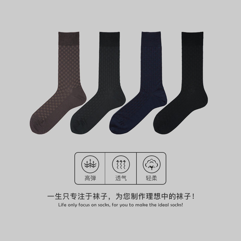 天猫Tabio无骨格纹袜子男透气吸湿商务袜潮中筒袜搭西装正装男袜