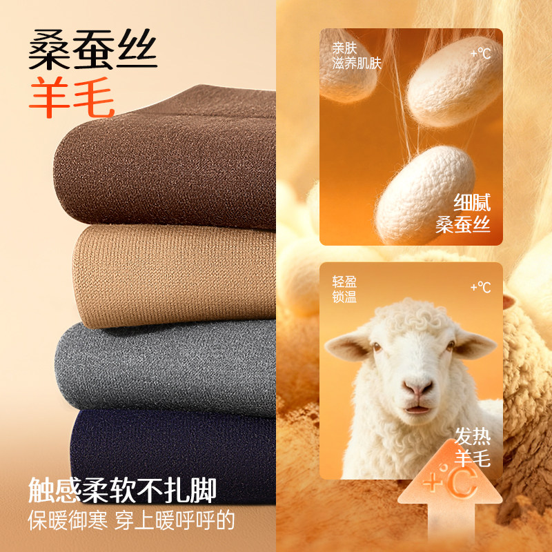 天猫羊毛袜子男士冬季防臭吸汗保暖中筒袜春秋黑色桑蚕丝商务长袜男袜