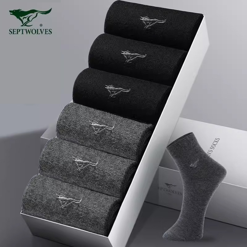 淘宝纯棉100%男袜中筒袜七匹狼春秋全棉透气吸汗休闲商务男袜子礼盒装