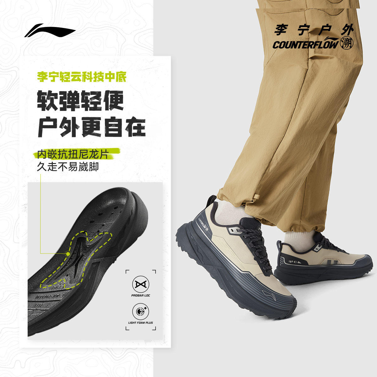 天猫李宁户外CF溯丨行际休闲鞋男女秋冬季加绒保暖减震轻便低帮运动鞋
