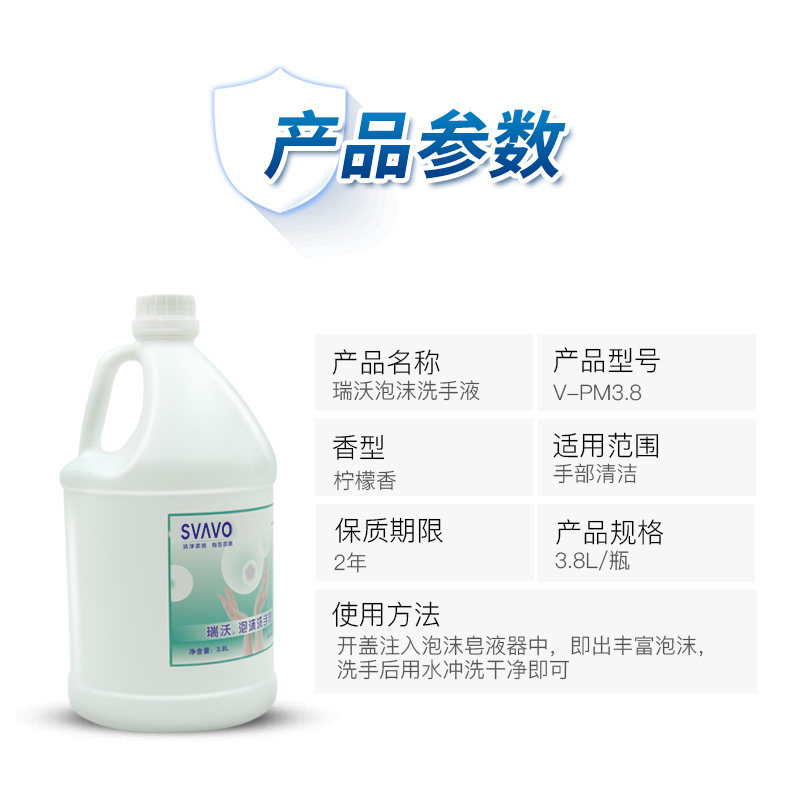瑞沃泡沫洗手液补充装3.8L大容量装,专为家庭和儿童设计,温和洁净,泡沫丰富细腻,有效去除手部污垢与细菌。产品含高效抑菌成分,可杀灭99.9%常见细菌,同时呵护肌肤,避免干燥刺激,适合全家日常使用。3.8L大桶装经济实惠,专为按压瓶补充设计,环保便捷,减少浪费。无磷配方,安全环保,适用于厨房、卫生间等多种场景。特别适合有孩子的家庭,帮助培养良好洗手习惯。瑞沃致力于提供安全、高效的清洁解决方案,让每一次洗手都更安心、更健康。