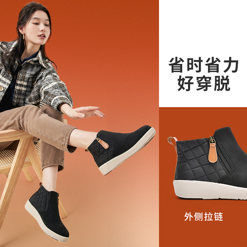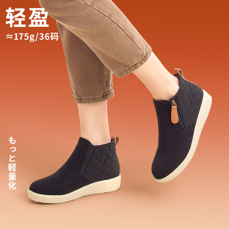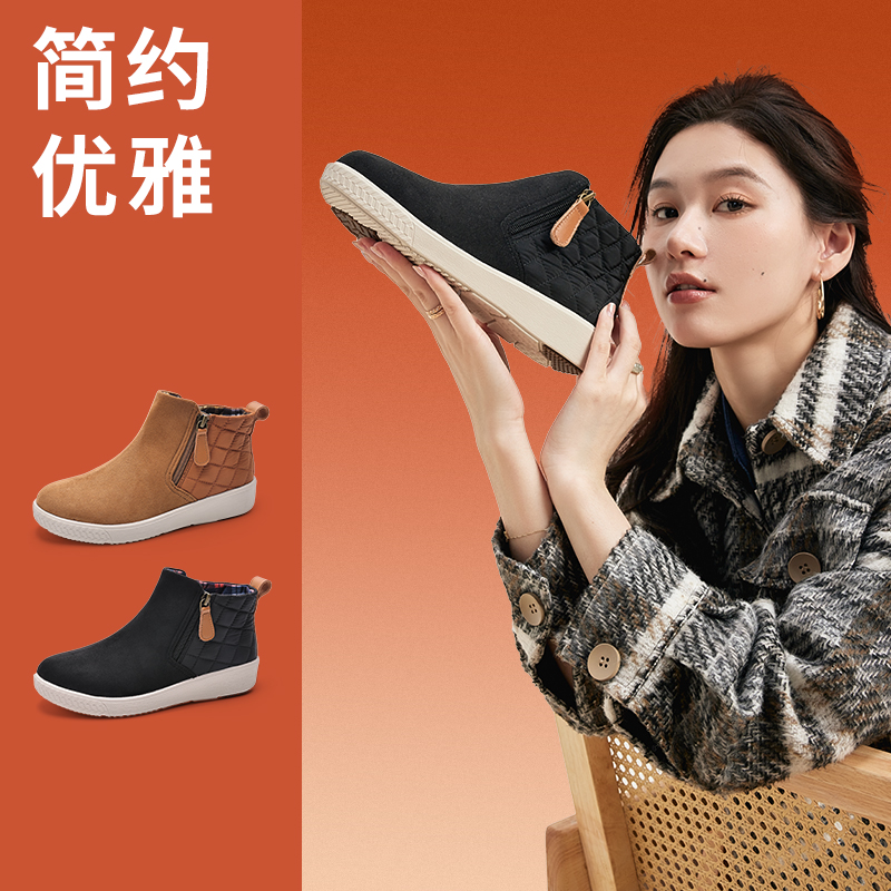 天猫Pansy盼喜日本女鞋休闲短靴百搭单靴平底舒适高帮鞋秋冬新款