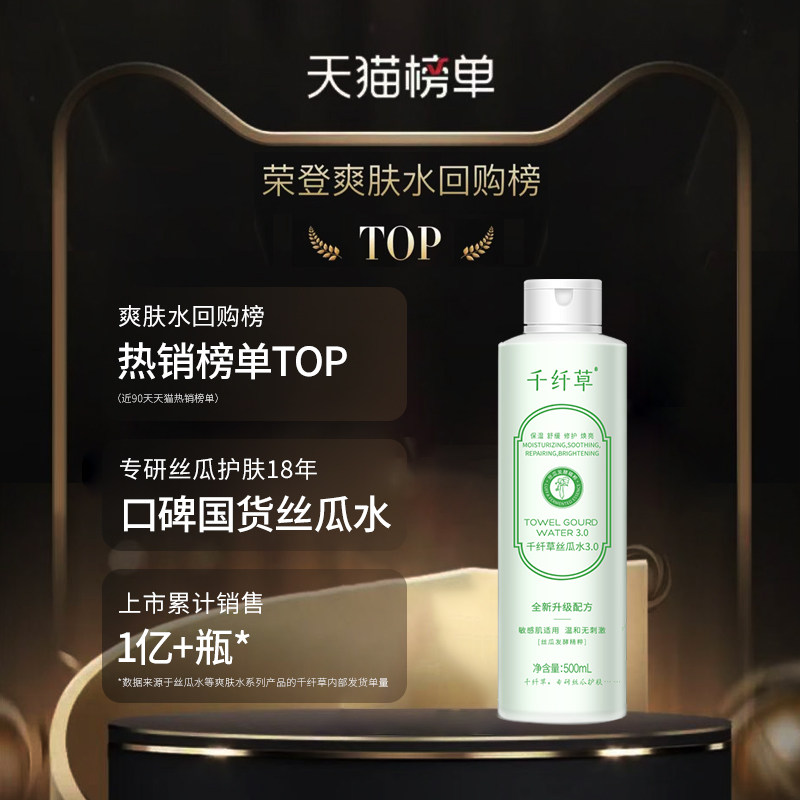 天猫千纤草丝瓜水爽肤水发酵控油女补水保湿舒缓喷雾化妆水乳芦荟湿敷