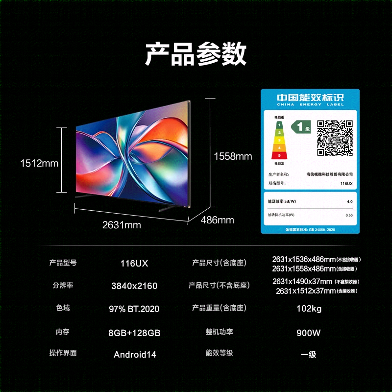 海信璀璨RGB-MiniLED 116UX是一款116英寸超大屏液晶电视机,凭借RGB三色MiniLED背光技术实现跨代升级。其采用三维控色算法,精准调控亮度、色温与色彩层次,呈现极致对比度与真实自然画质。百万级分区背光配合高刷新率,有效消除光晕,提升动态清晰度。同时搭载自研画质芯片,支持4K HDR及广色域显示,色彩还原更精准。结合沉浸式音效系统与智能交互平台,为用户带来影院级视听体验。作为行业首款百吋级RGB-MiniLED电视,116UX重新定义高端大屏标准,引领液晶电视技术新方向。