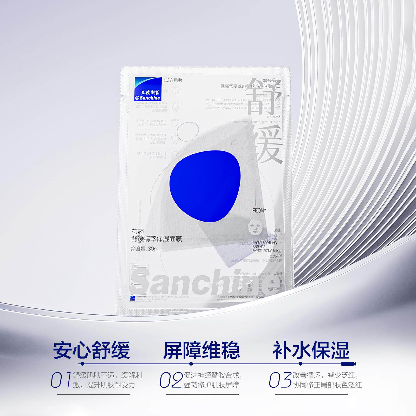 三精制药芍药舒缓精萃保湿面膜,专为敏感肌与干燥肌研发,蕴含高纯度芍药精萃,温和舒缓肌肤不适,有效修护受损屏障。面膜采用亲肤透薄膜布,紧密贴合面部轮廓,深层导入保湿精华,迅速为肌肤注入澎湃水分,提升肌肤锁水力。长期使用可增强肌肤抵御力,改善干燥、泛红与粗糙问题,令肌肤强韧健康、水润透亮。无酒精、无香精配方,通过皮肤科测试,安心使用。三精制药依托专业制药背景,将医药级标准融入护肤领域,打造安全高效的修护型面膜,是日常维稳与密集护理的理想之选。