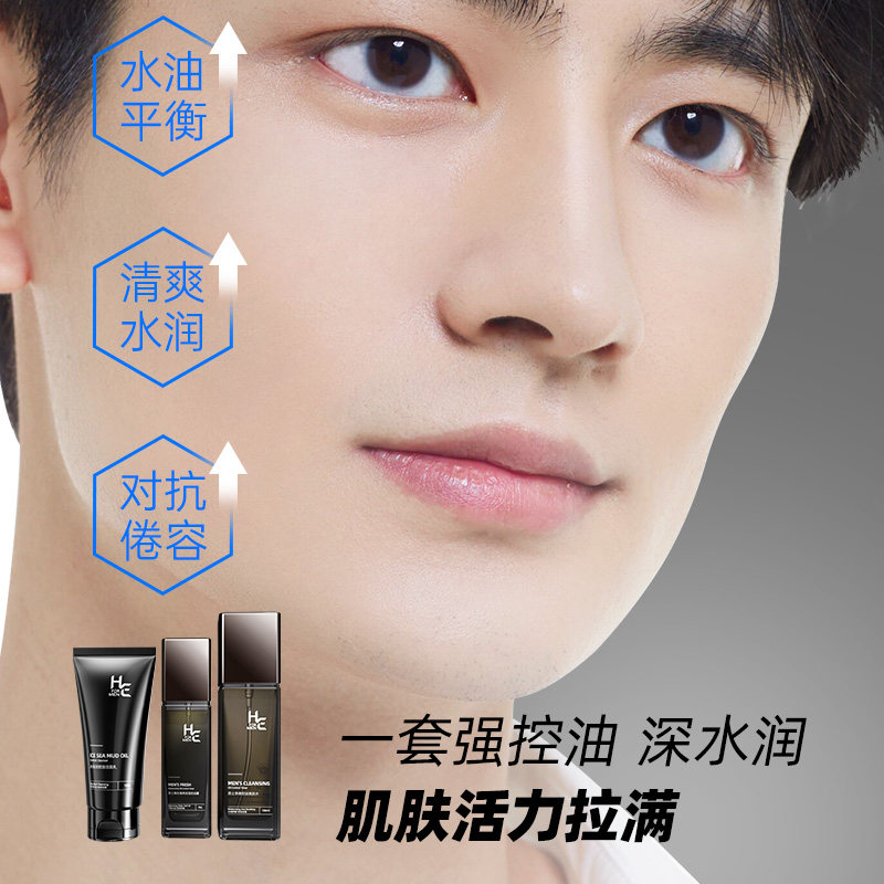 天猫【横扫油光】赫恩净爽控油补水保湿精华洁面乳液男士礼盒三件套装