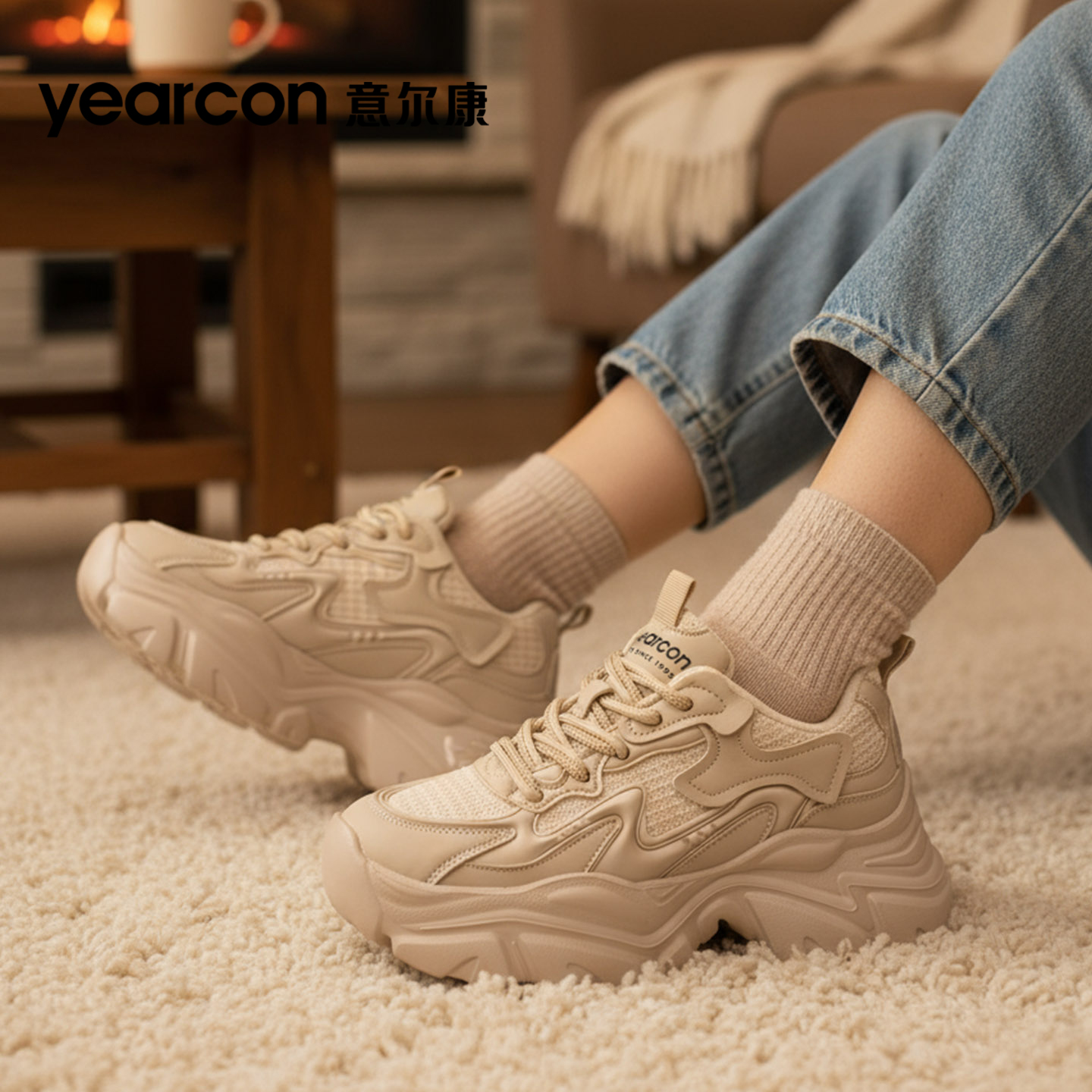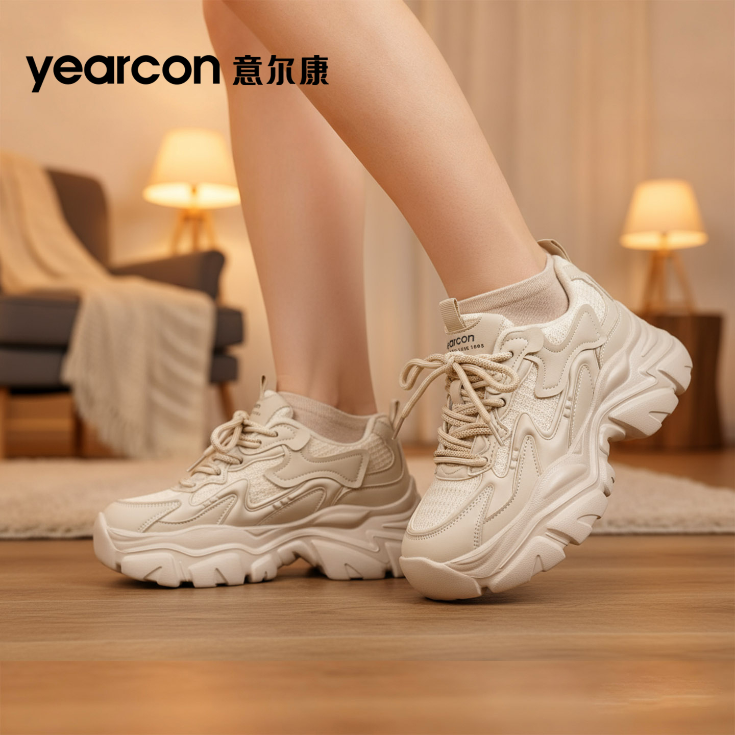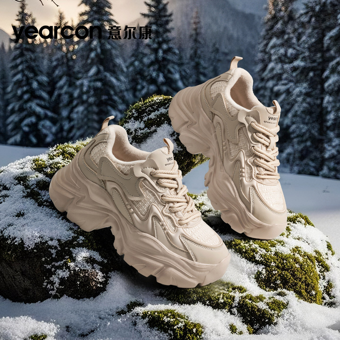 天猫意尔康女鞋2025新款冬季加绒保暖百搭厚底增高女士休闲运动老爹鞋