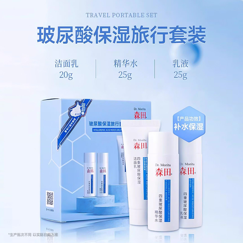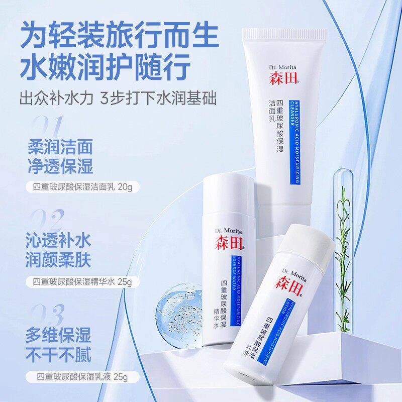 天猫森田玻尿酸补水保湿水乳洁面旅行装套装春夏清爽轻便出行滋润乳液