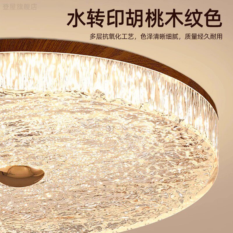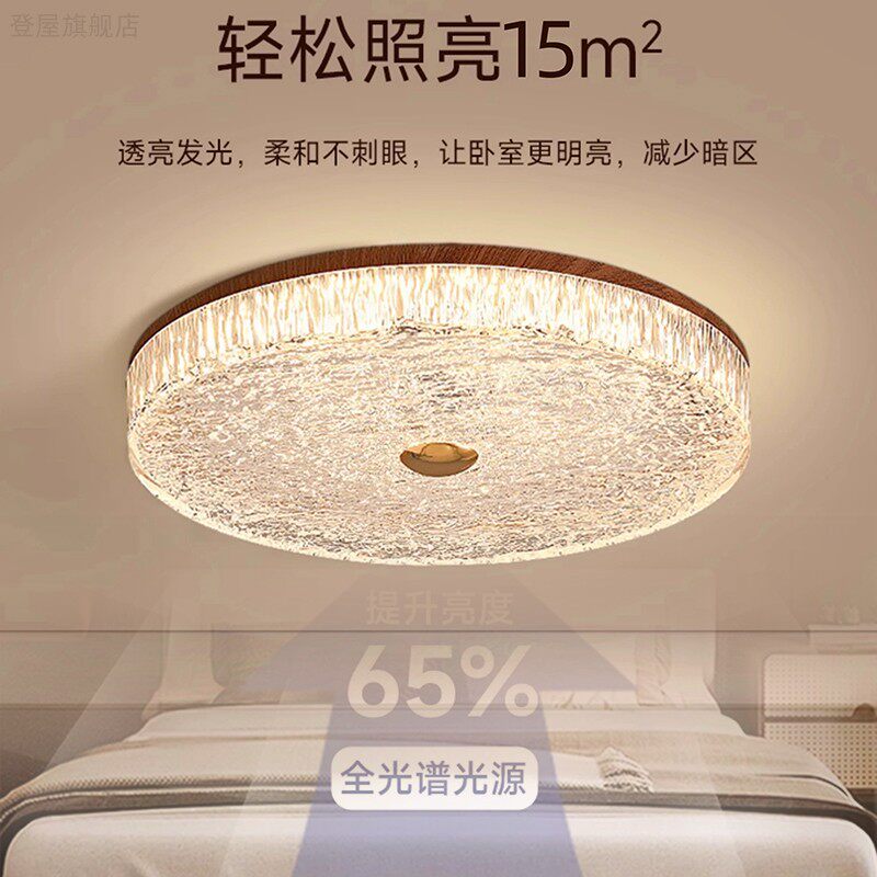 淘宝中古风卧室吸顶灯复古胡桃木色轻奢法式房间全光谱护眼圆形书房灯