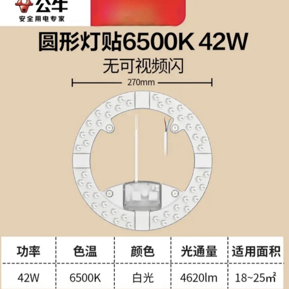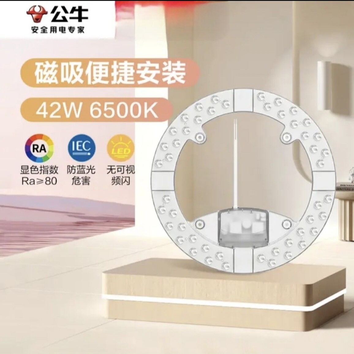 淘宝公牛42瓦6500k白光瓦LED封贴磁吸灯芯吸顶灯替换灯盘