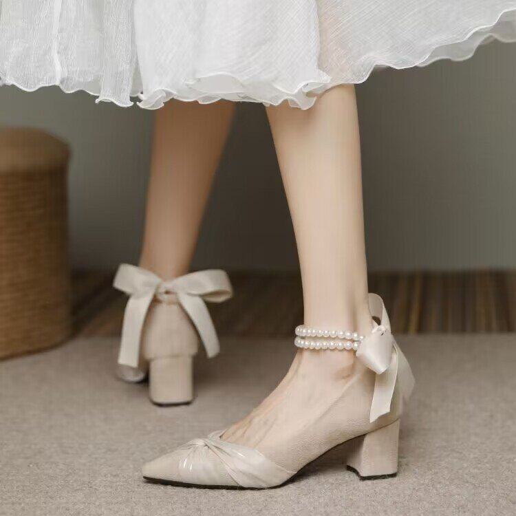 现货|珍珠水仙|白茶入梦原创蝴蝶结尖头细高跟优雅百搭少女鞋