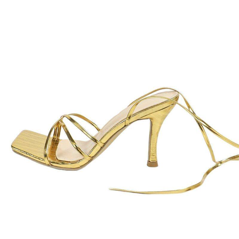 淘宝女士方头欧美性感跨境交叉带绑带缠腿高跟鞋细跟凉鞋