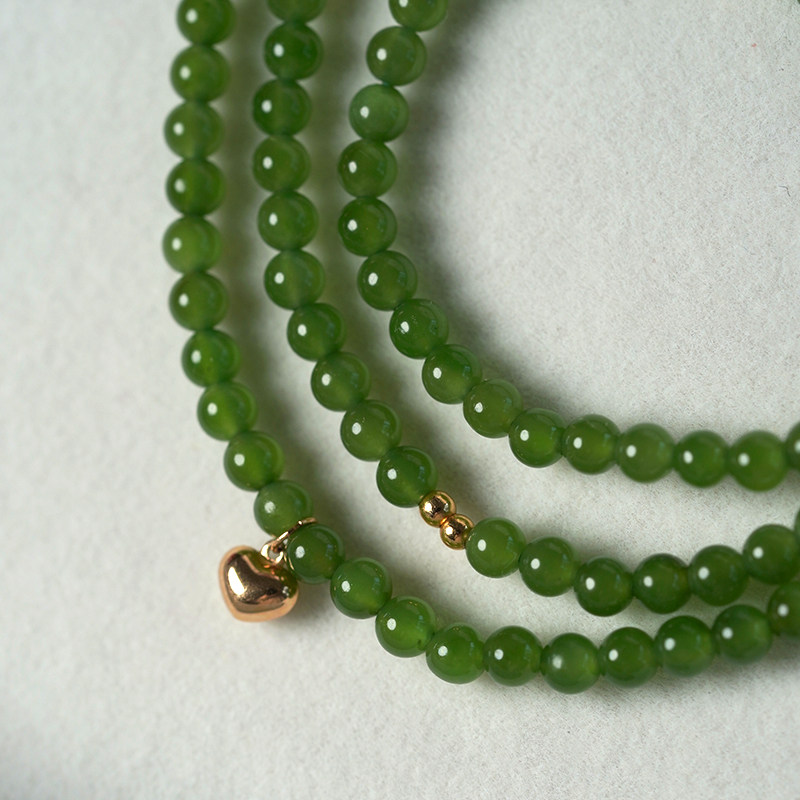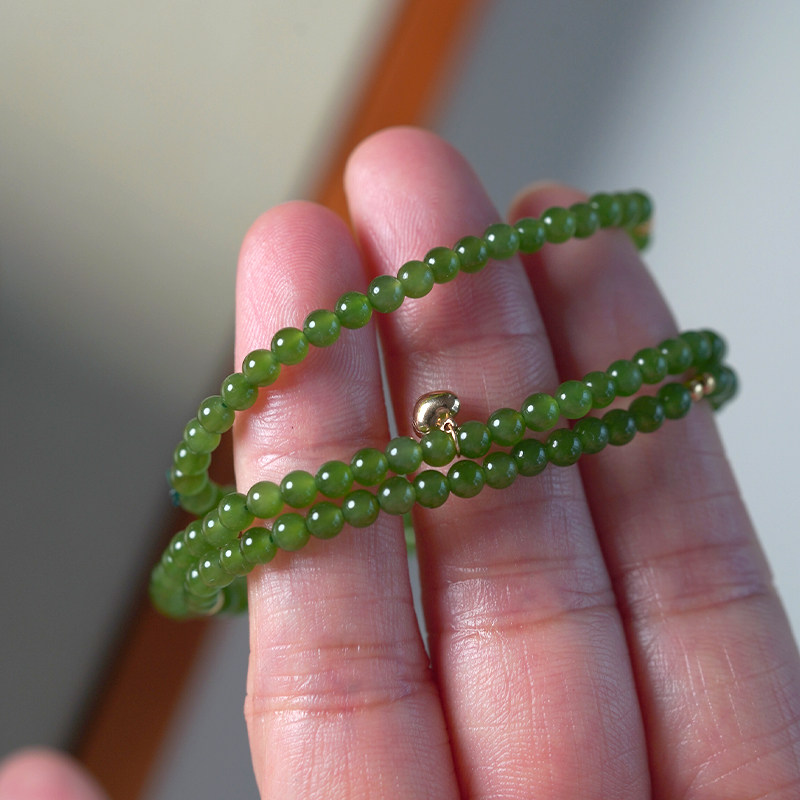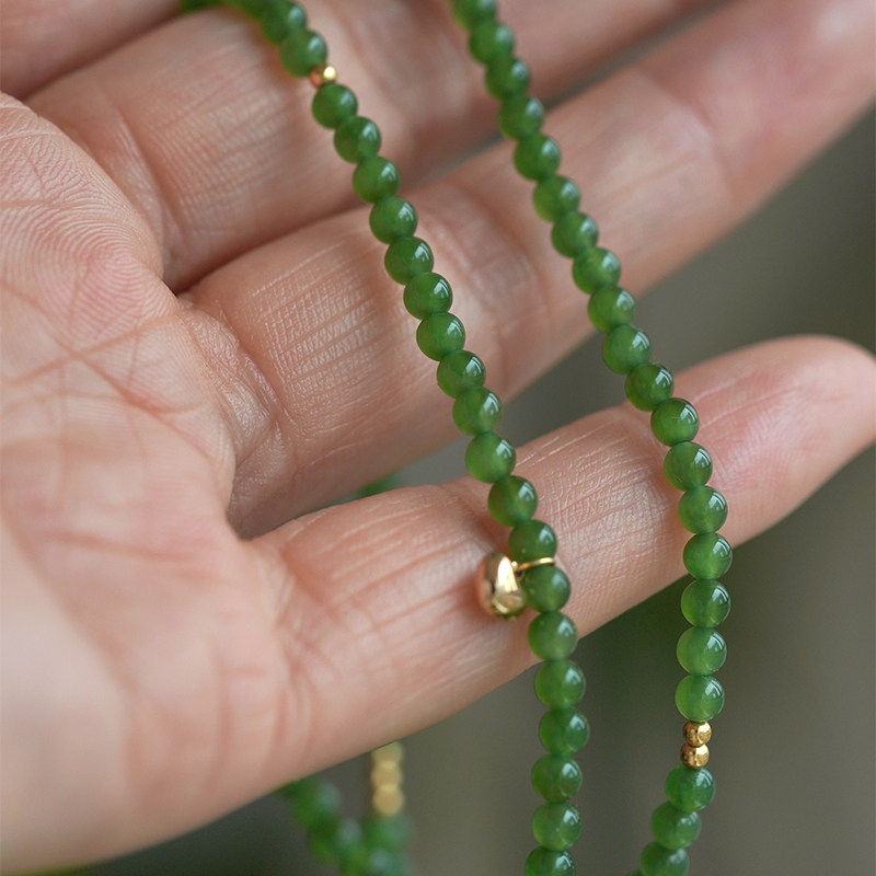 淘宝缘物和田玉碧玉18k金手串手饰碧玉圆珠天然玉石女款小米珠