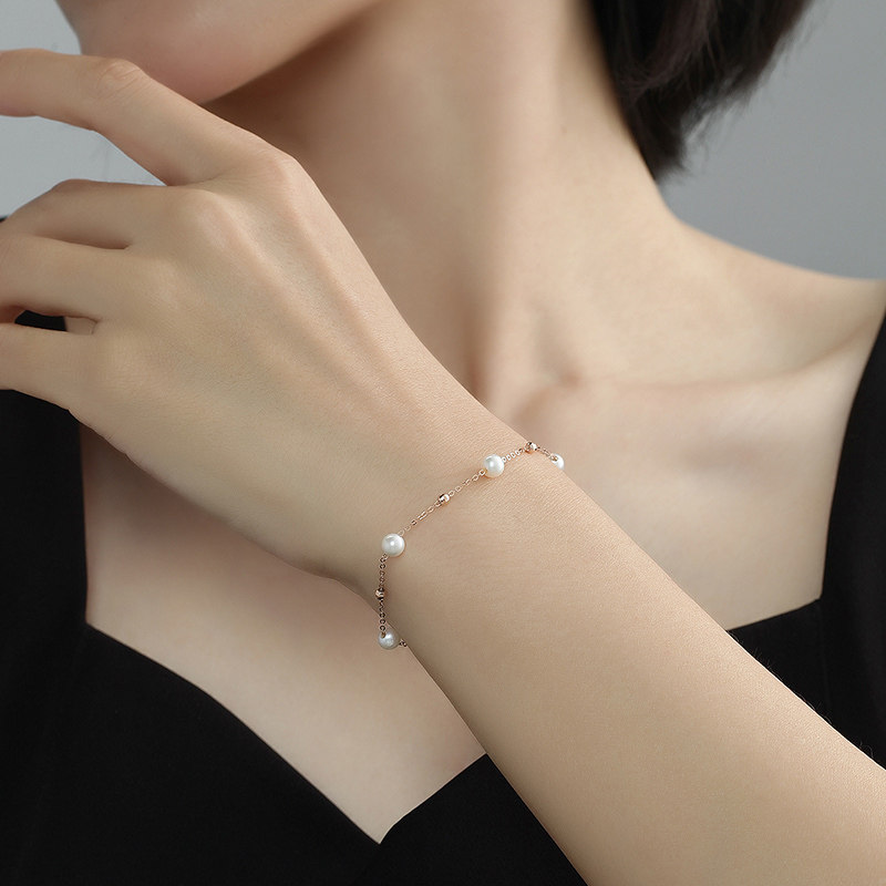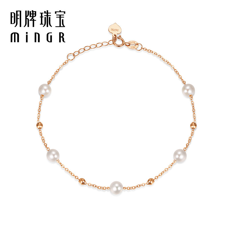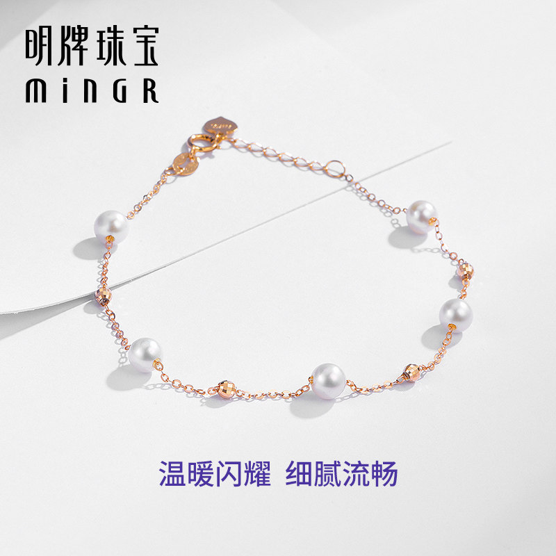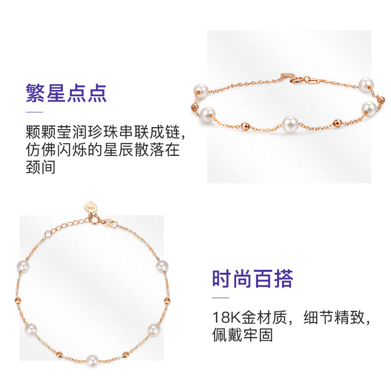 天猫明牌珠宝18K金满天星手链 玫瑰金珍珠女链彩金小金珠手饰CSK0094
