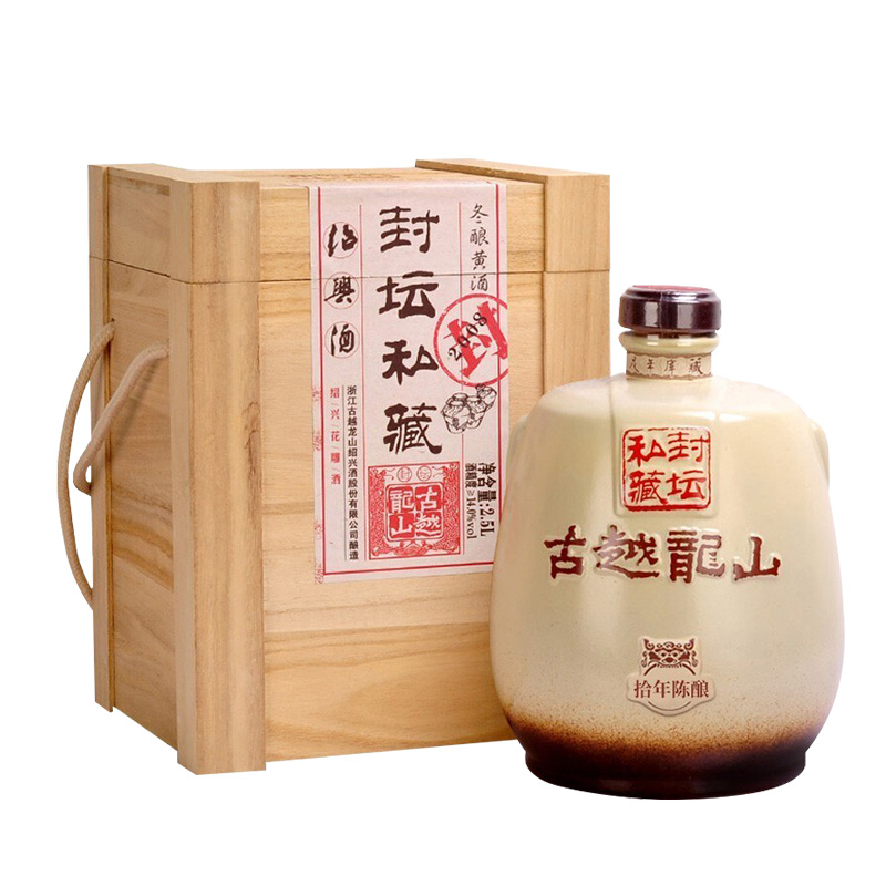 天猫古越龙山绍兴黄酒十年陈封坛私藏15度半干型花雕酒2.5L坛酒礼盒装