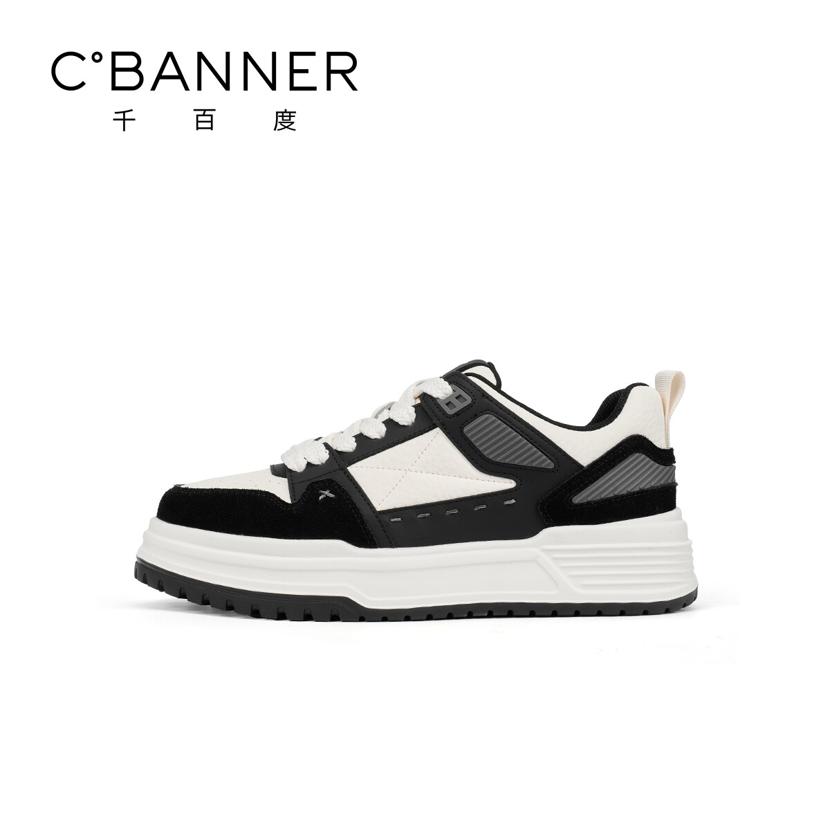 天猫千百度衍界鞋2026春季新款板鞋休闲鞋牛皮运动鞋黑白厚底舒适男鞋