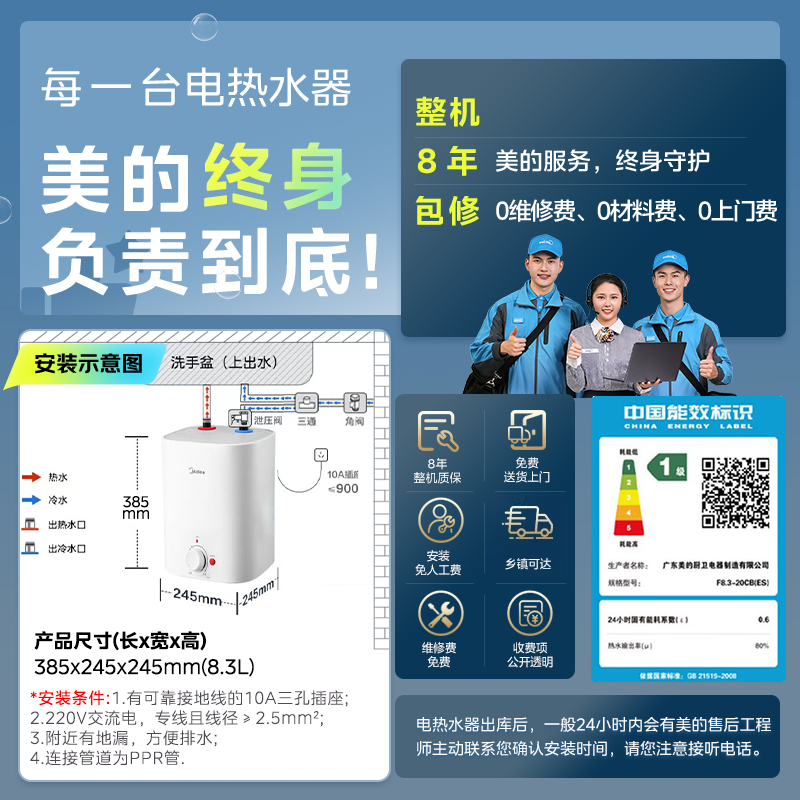 天阿诗丹顿小厨宝家用厨房电热水器速热储水即热式一级能效小型8L升