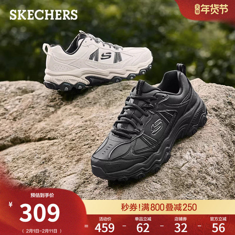 天猫斯凯奇春季男鞋波浪底休闲鞋时尚运动鞋厚底缓震跑步鞋登山徒步鞋