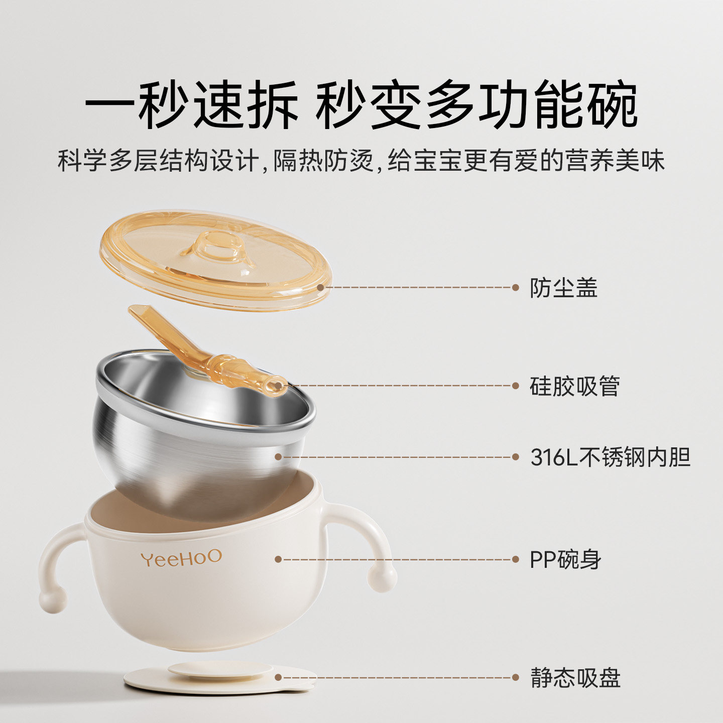 天猫英氏婴幼儿辅食碗宝宝喝汤吸管碗米糊杯专用不锈钢新生儿喂粥水碗