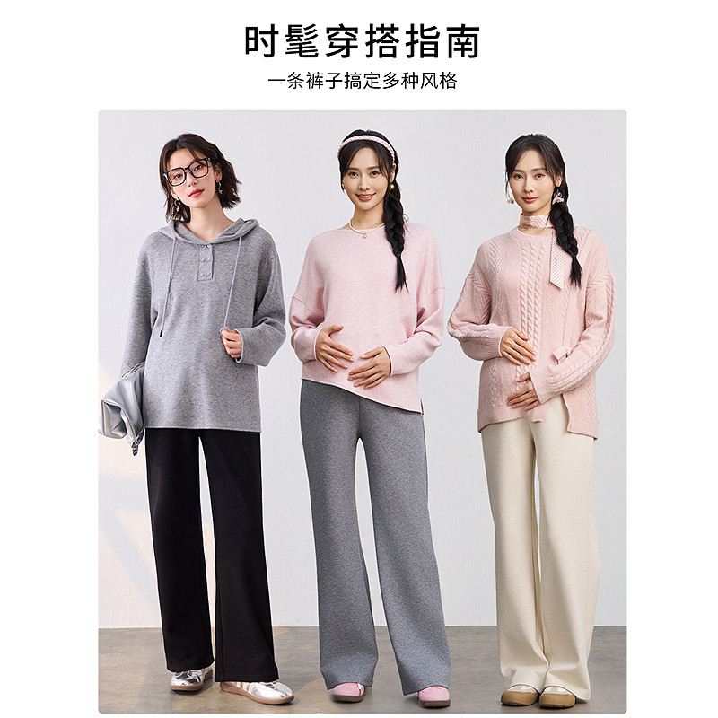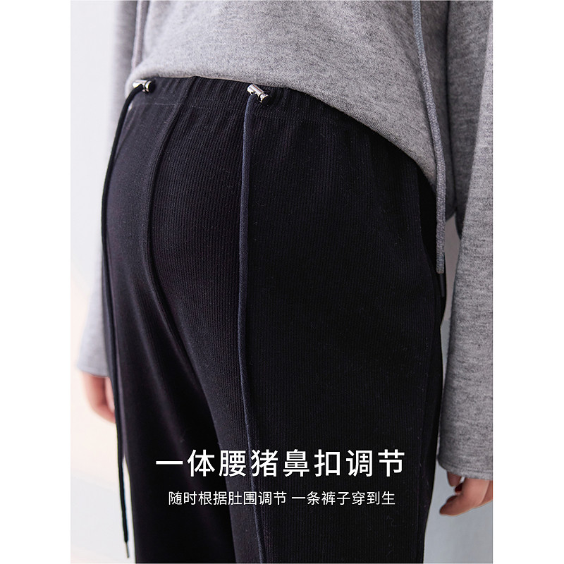 天猫快乐屋孕妇裤无托腹秋冬2026新款坑条直筒裤外穿宽松针织长裤显瘦