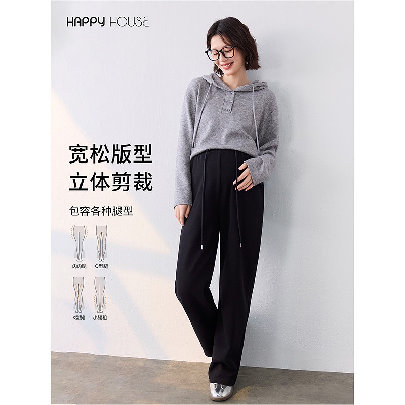 淘2026新款孕妇装春冬季外穿垂感抽绳阔腿裤宽松显瘦休闲百搭直筒裤