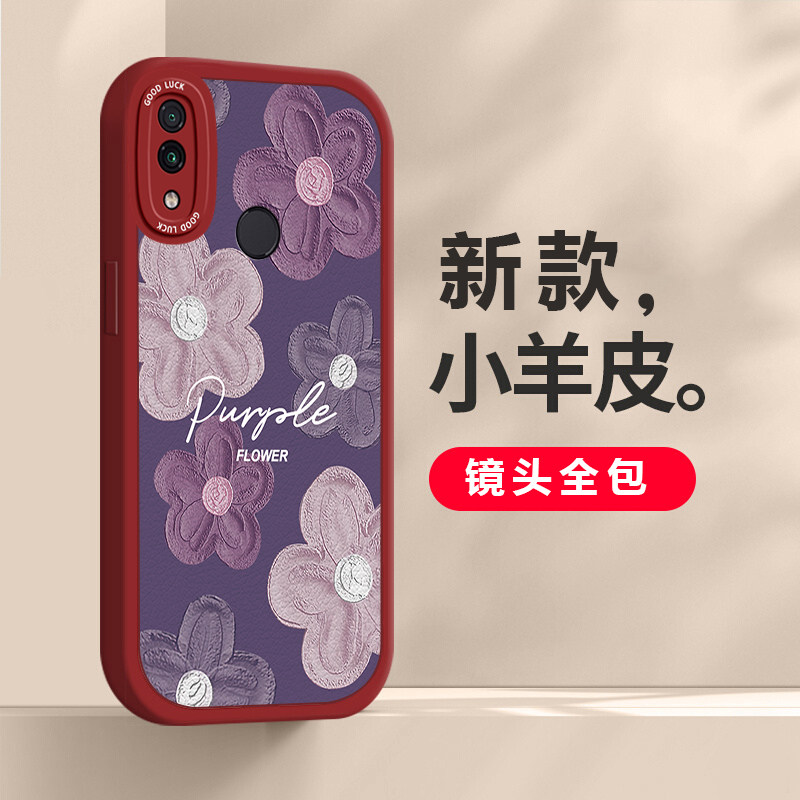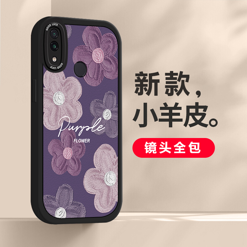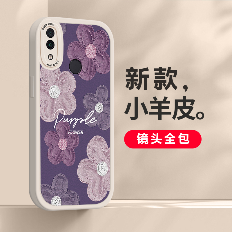 天猫适用红米note7pro手机壳新款红米note7创意小羊皮女软硅胶镜头全包高级感唯美紫色花防摔保护套