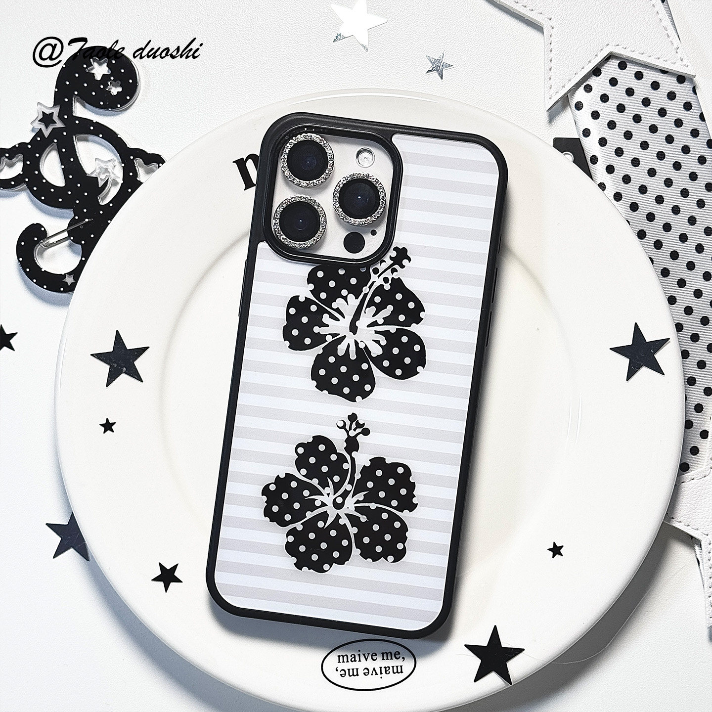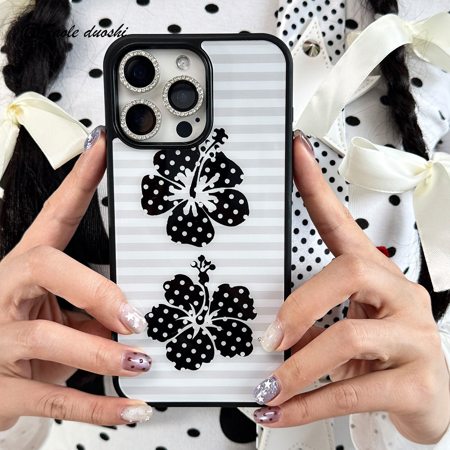 淘宝复古古早条纹ins辣妹黑白波点扶桑花适用iphone16promax亚克力壳苹果15plus/14手机壳16pro