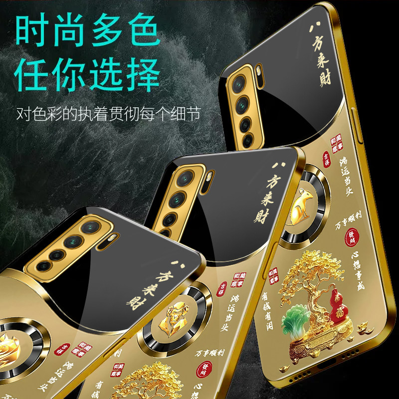 天猫适用于华为Nova7se手机壳电镀金玻璃简约新款轻奢生肖保护套镜面时尚华为nova7se潮牌硅胶手机套高颜值外壳