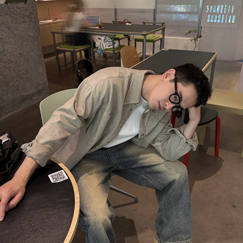 淘宝Nick Tian 卡其色柔软牛仔外套衬衫男秋新款韩系简约宽松休闲百搭