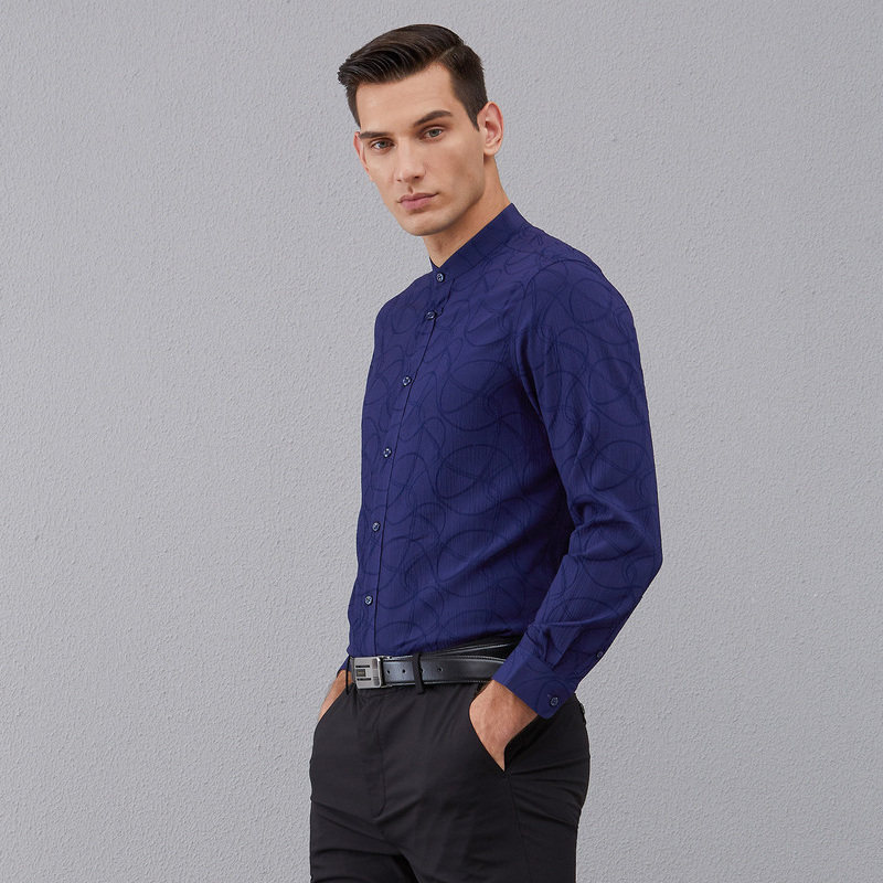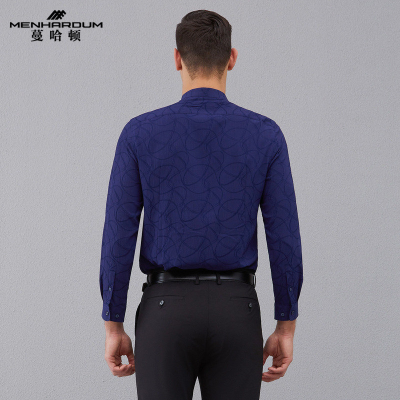 天猫蔓哈顿春夏新款男士修身立领衬衣中年正装寸衫纯色长袖衬衫潮