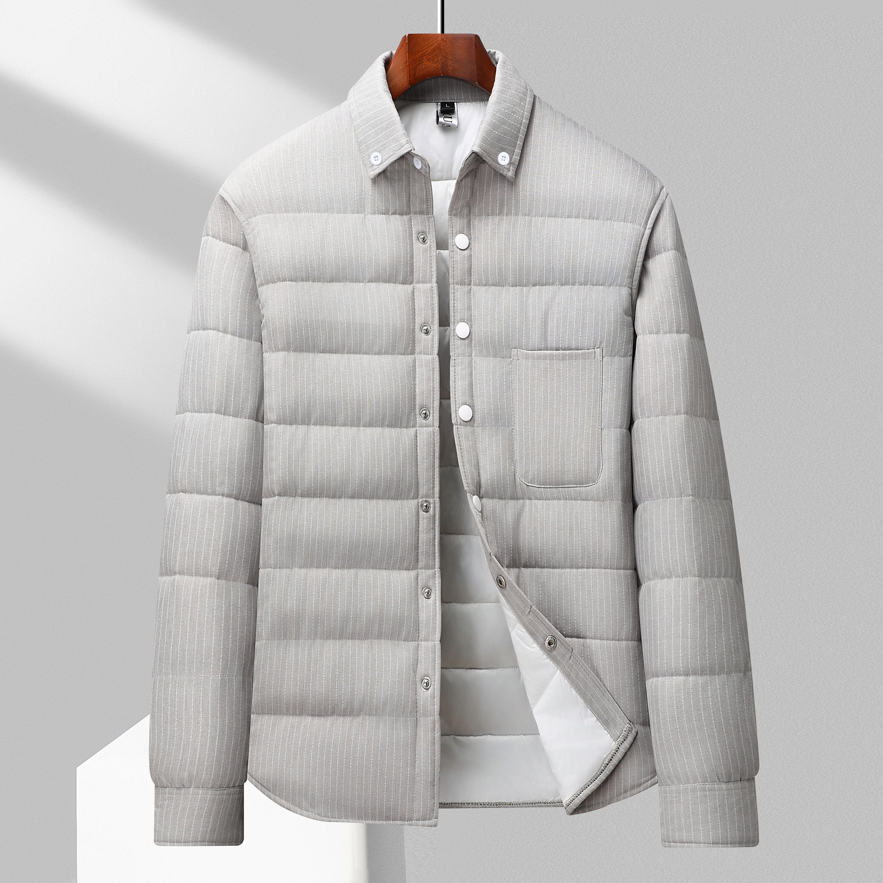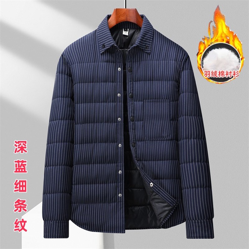 淘宝高档男士条纹加棉衬衫外套保暖加厚夹棉羽绒棉衬衣长袖休闲百搭