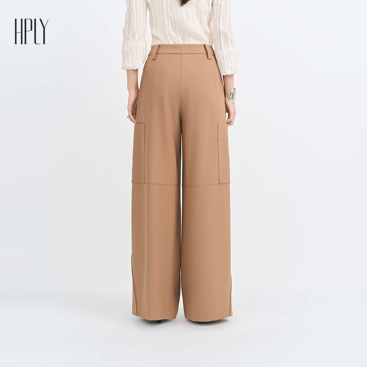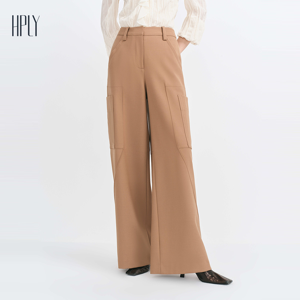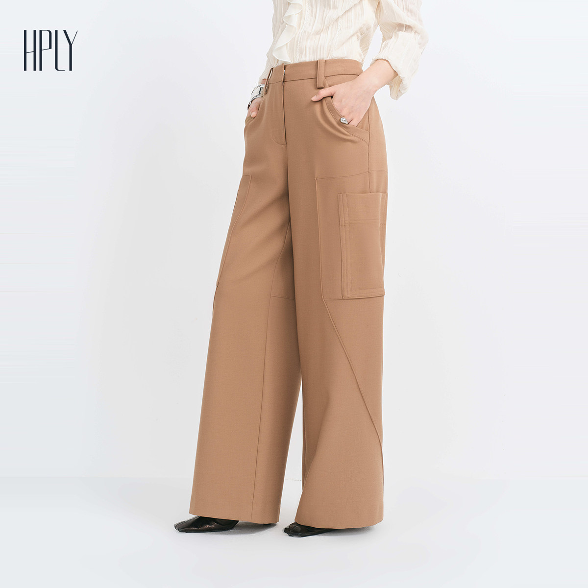 天猫【商场同款】HPLY荷比俪冬季新款女宽松直筒工装拼接口袋长裤
