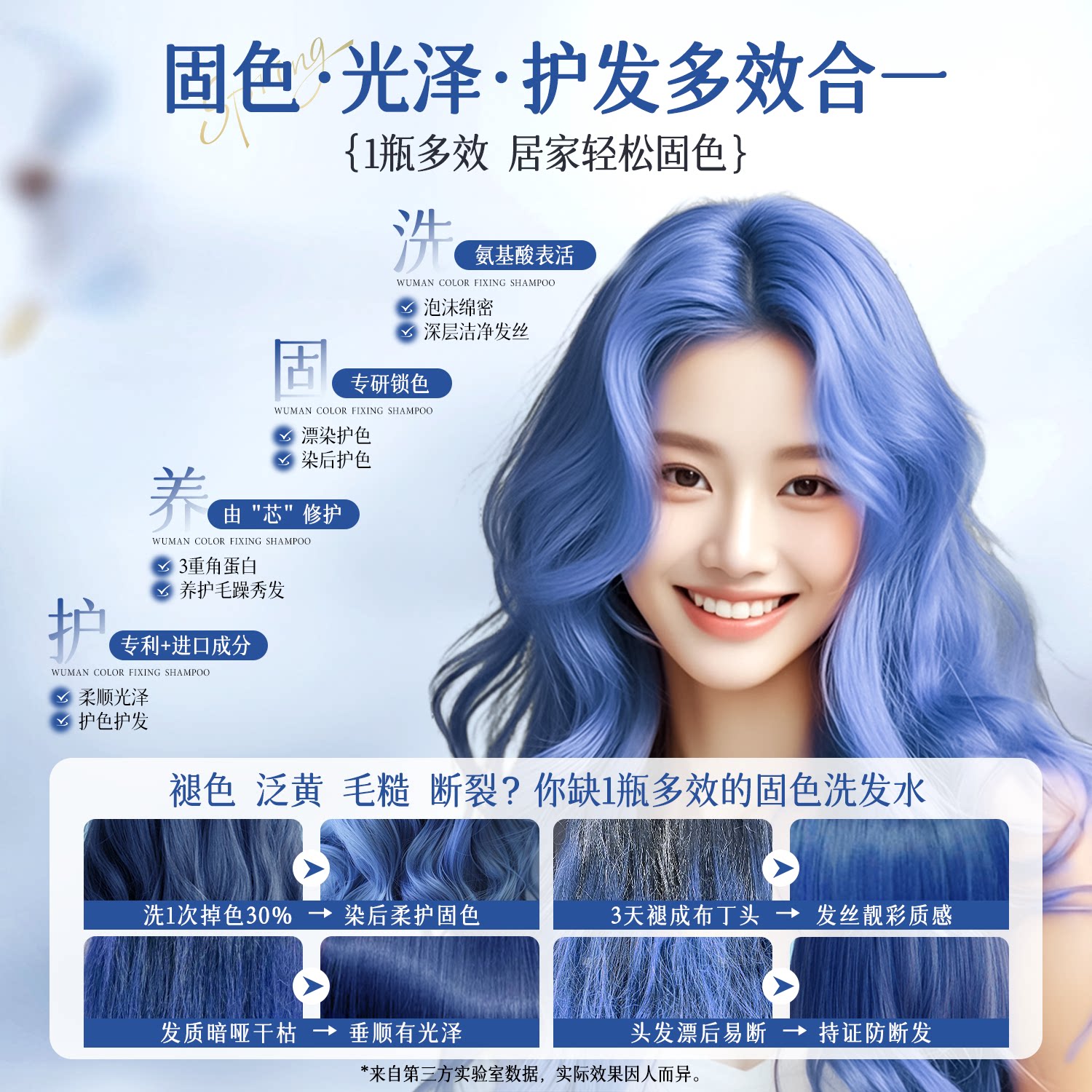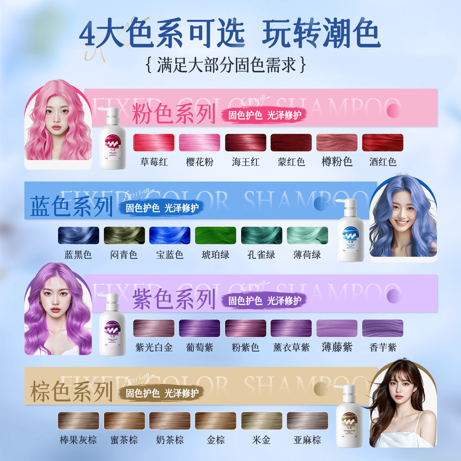天猫乌蔓WOMO固色洗发水锁色洗护套装粉色棕色紫色蓝色护色洗头不易黄