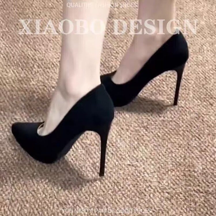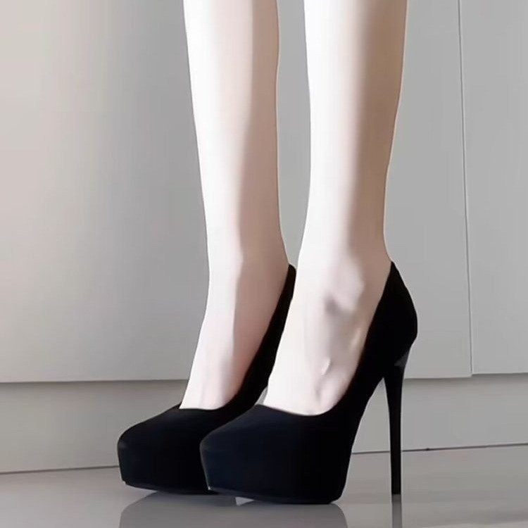 淘宝黑色防水台高跟鞋女秋冬法式绒面尖头细跟厚底气质小个子不累脚鞋