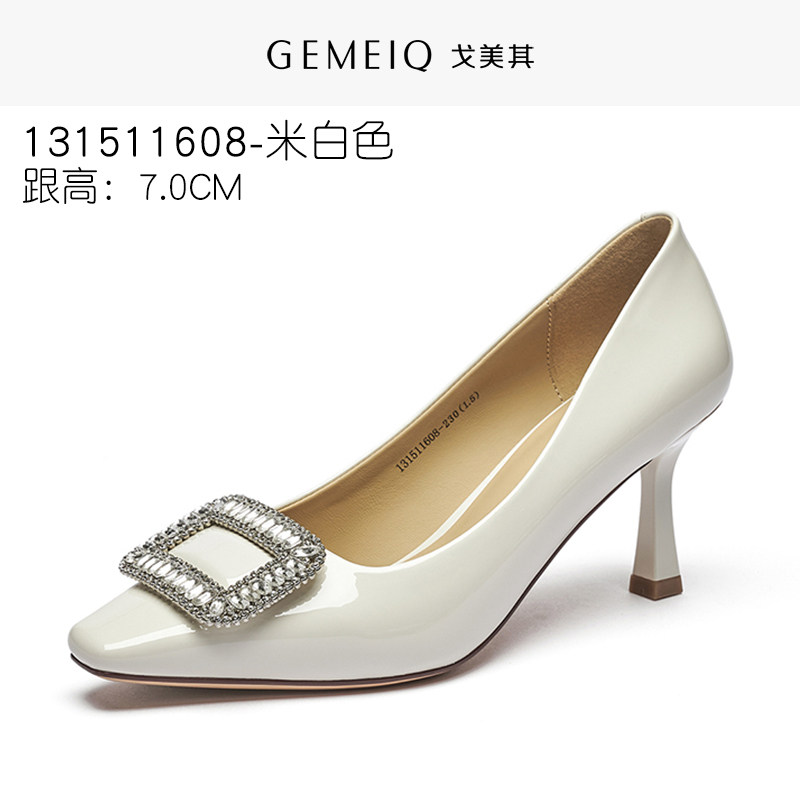 吴大叔粗跟高跟鞋白色女鞋配裙子百搭职业超软羊皮气质高级不累脚