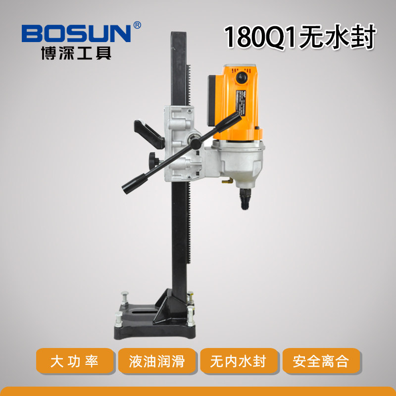 博深水钻机台式无水封大功率钻孔机支架,专为混凝土、墙体等硬质材料高效打孔设计。采用大功率电机,动力强劲,配合水转机头,有效降温降尘,延长钻头寿命,提升作业效率。独特的无水封结构,避免传统密封件易损问题,维护简便,运行更稳定。配套稳固支架,确保钻孔精准、操作安全,适用于空调安装、水电改造、建筑加固等工程场景。整机结构紧凑,操作便捷,兼具耐用性与实用性,是专业施工人员的理想选择。广泛应用于家庭装修、市政工程及工业建设领域,助力高效、精准完成各类钻孔任务。