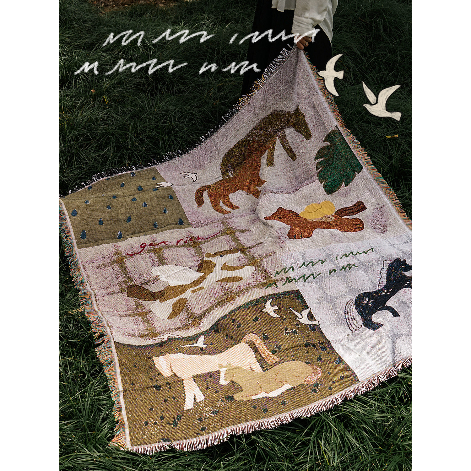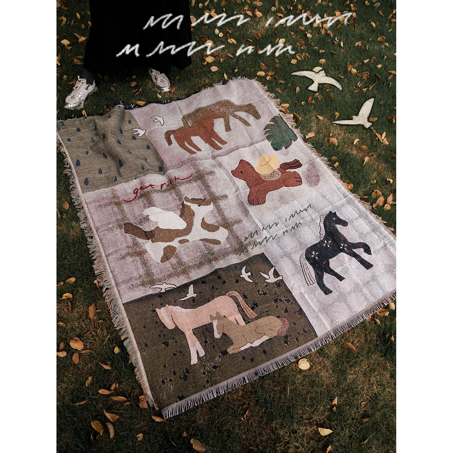 淘宝MhappyManner 原创逐梦追光小马艺术挂毯沙发毯针织盖毯空调毯