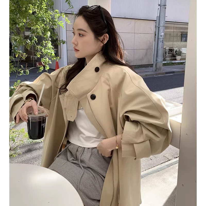 中年女士风衣短款时尚宽松韩版上衣2025秋新款洋气妈妈立领薄外套