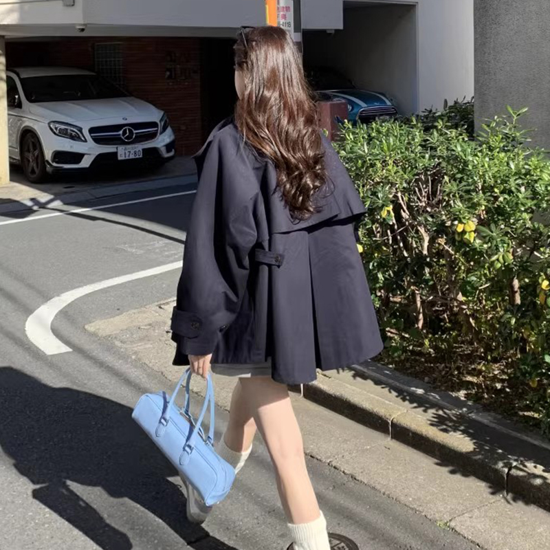 zezi短款风衣外套女纯棉双排扣新款春秋通勤外套女时尚小个子上衣