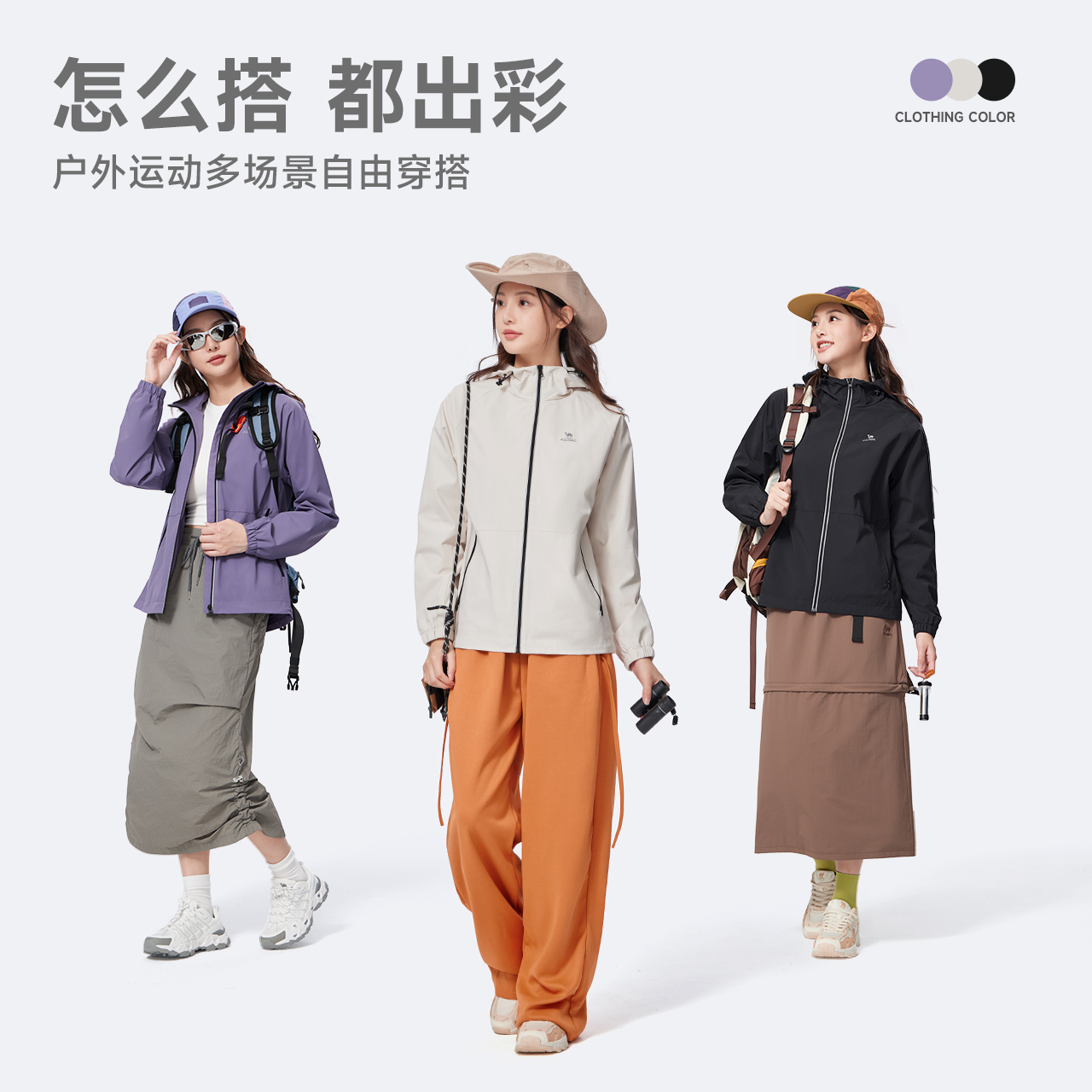 淘新款运动户外休闲式冲锋衣女糖果色防风防雨透气登山风衣春秋外套