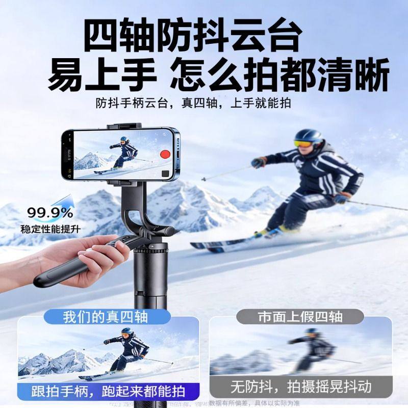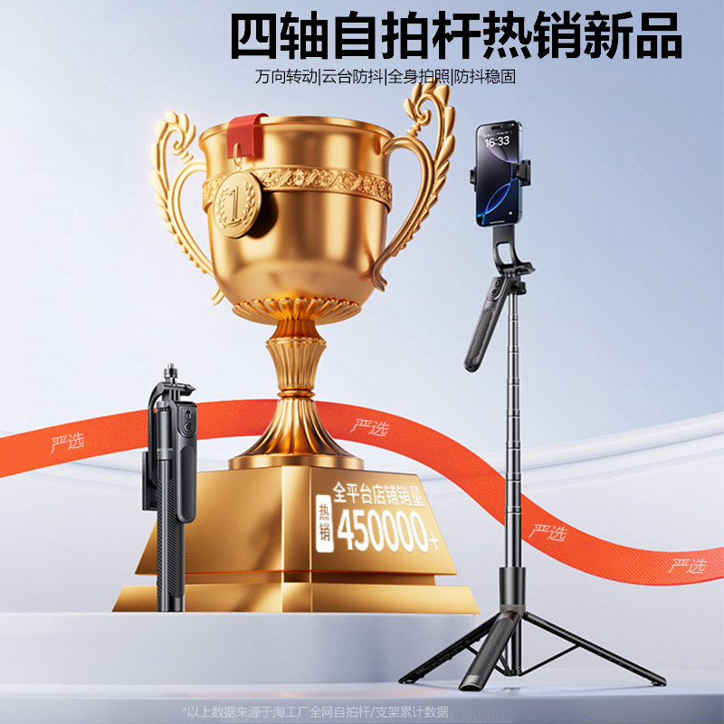 天四轴】2025新款自拍杆落地三脚架手机通用自拍神器360度旋转手持防抖云台旅游便携拍照直播拍摄支架多功能24