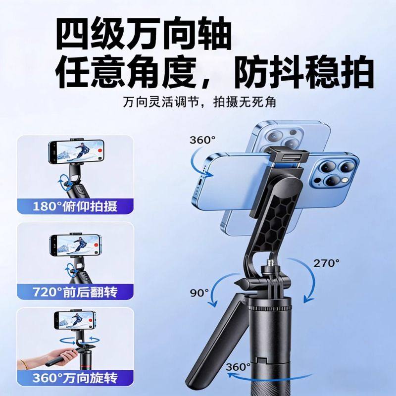四轴】2025新款自拍杆落地三脚架手机通用自拍神器360度旋转手持防抖云台旅游便携拍照直播拍摄支架多功能24