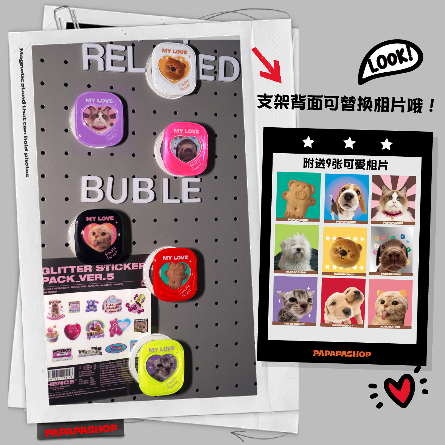 淘宝PaPaPa制造局 可爱彩色磁吸支架可放照片拍立得手机支架通用支架