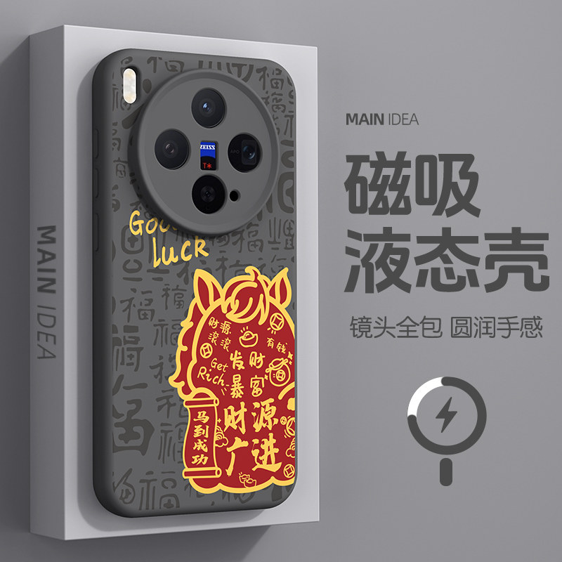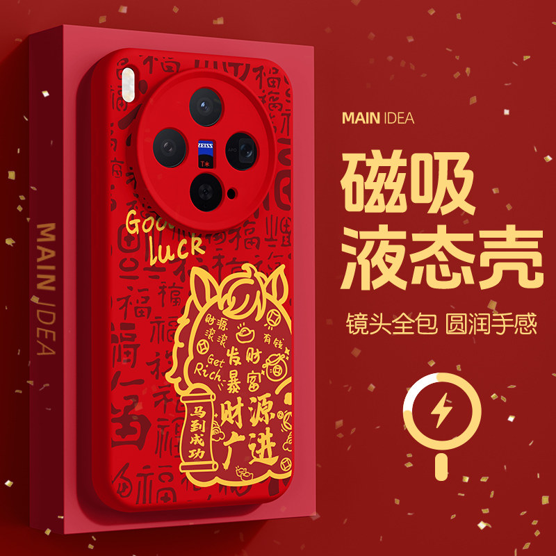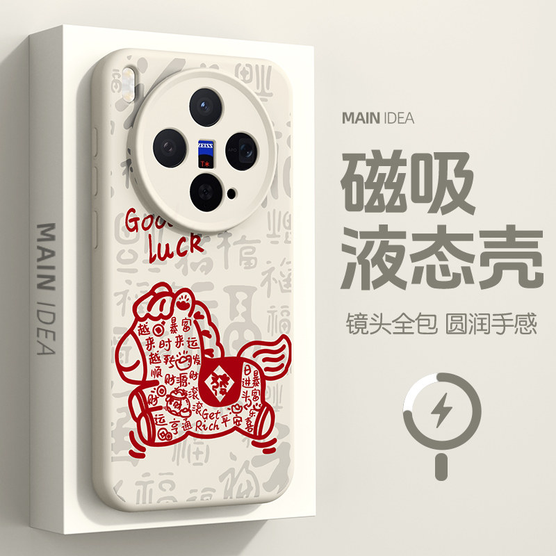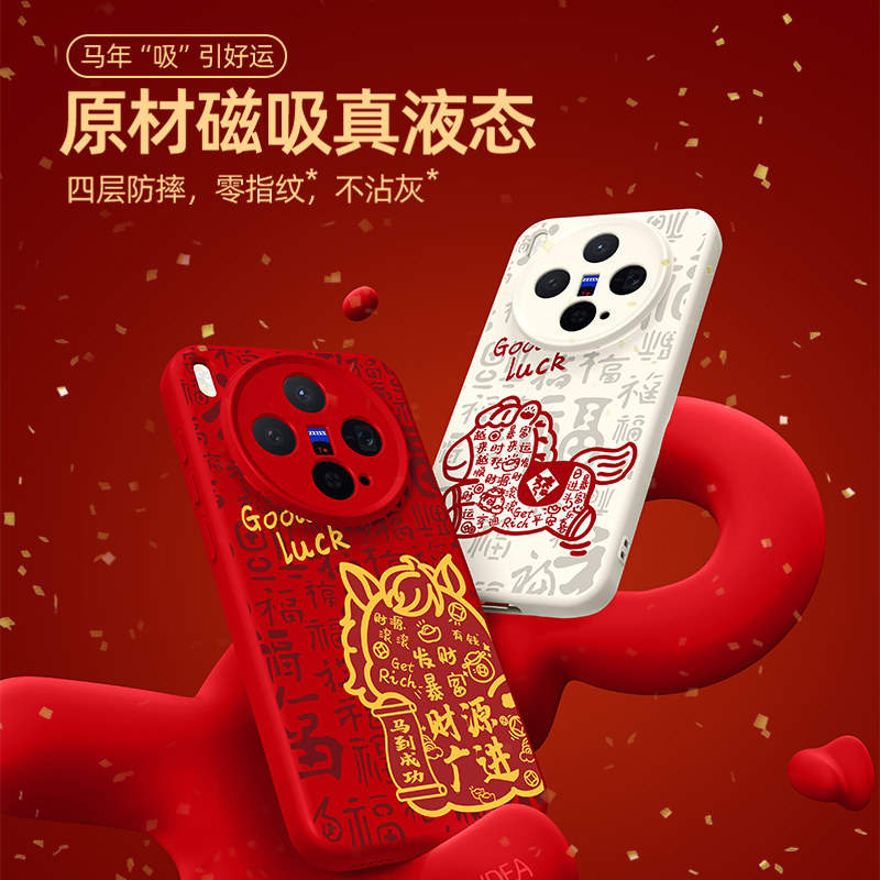 专为vivo X300系列打造的2026马年新年款手机壳,涵盖X300、X300 Pro、X200s、X200 Ultra及X200 Pro mini等多型号,兼容磁吸充电功能,使用更便捷。采用高品质硅胶软材质,手感细腻,防摔抗震,全面保护机身。全包镜头设计有效防止刮擦,四角加固提升抗冲击能力。新年限定图案融合传统马年元素与现代美学,寓意吉祥如意。精准开孔,不遮挡按键与接口,贴合度高,拆卸轻松。无论是日常使用还是节日送礼,都是vivo用户的理想选择,兼顾防护、功能与节日氛围。