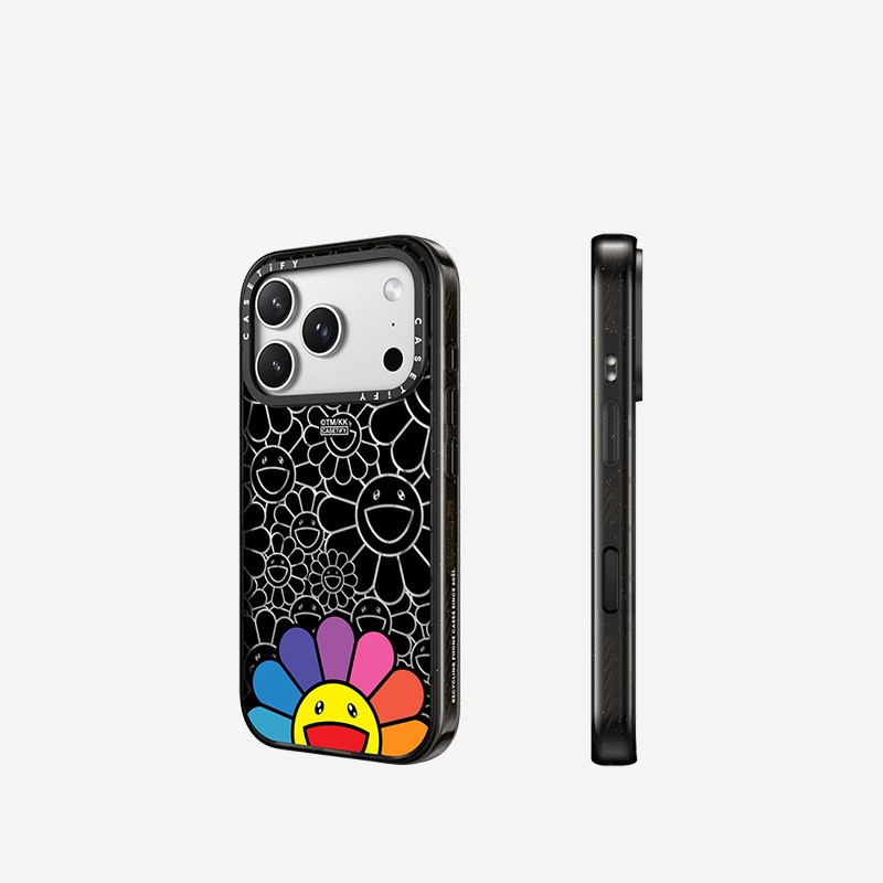 村上隆与CASETiFY再度携手推出FLOWERS BLOOM SMILE联名手机壳系列,融合其标志性的超扁平艺术风格与 vibrant 花卉元素。此次设计涵盖彩虹、粉嫩与酷黑三款配色,以立体浮雕工艺呈现绽放的花朵与经典笑脸符号,洋溢治愈又前卫的时尚气息。专为iPhone 17 Pro Max、17 Pro及16 Pro Max打造,采用环保抗摔材质,兼顾美学与防护性能。每一款手机壳不仅是日常配饰,更是一件可穿戴的艺术品,让科技产品焕发独特个性,展现佩戴者的艺术品味与生活态度。限量发售,值得收藏。