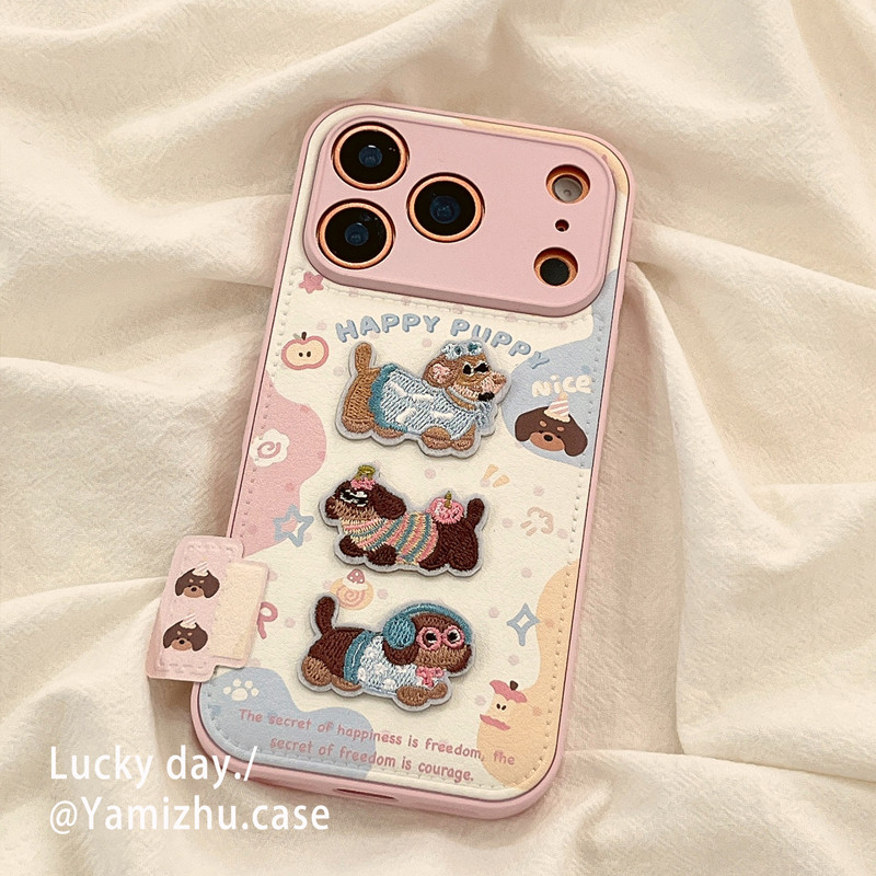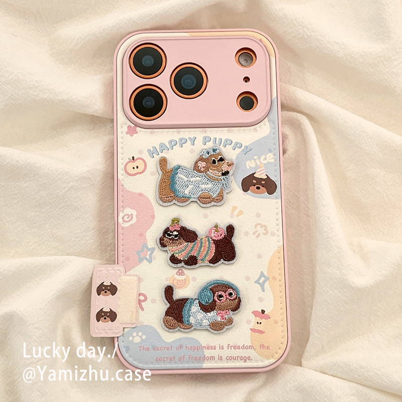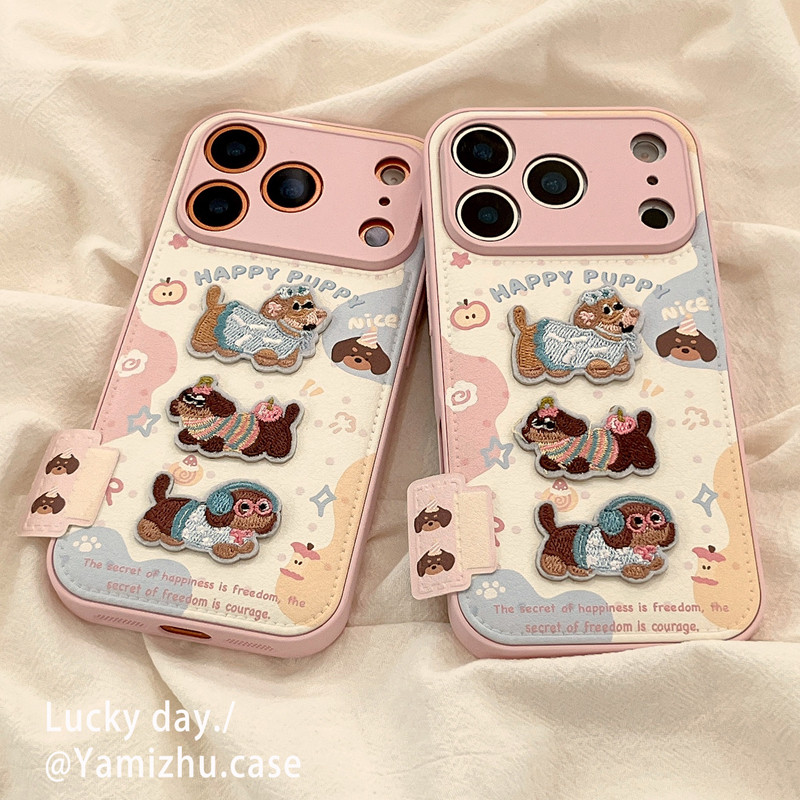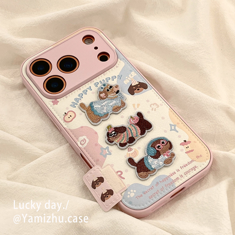 天猫ZYL皮质刺绣立体卡通小狗适用于小米 17promax/小米15pro/14pro手机壳红米k90pro/红米k80至尊note15plus气垫