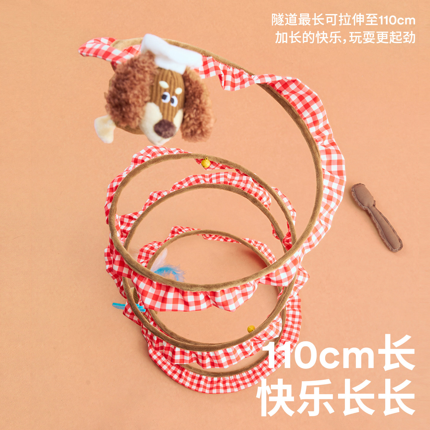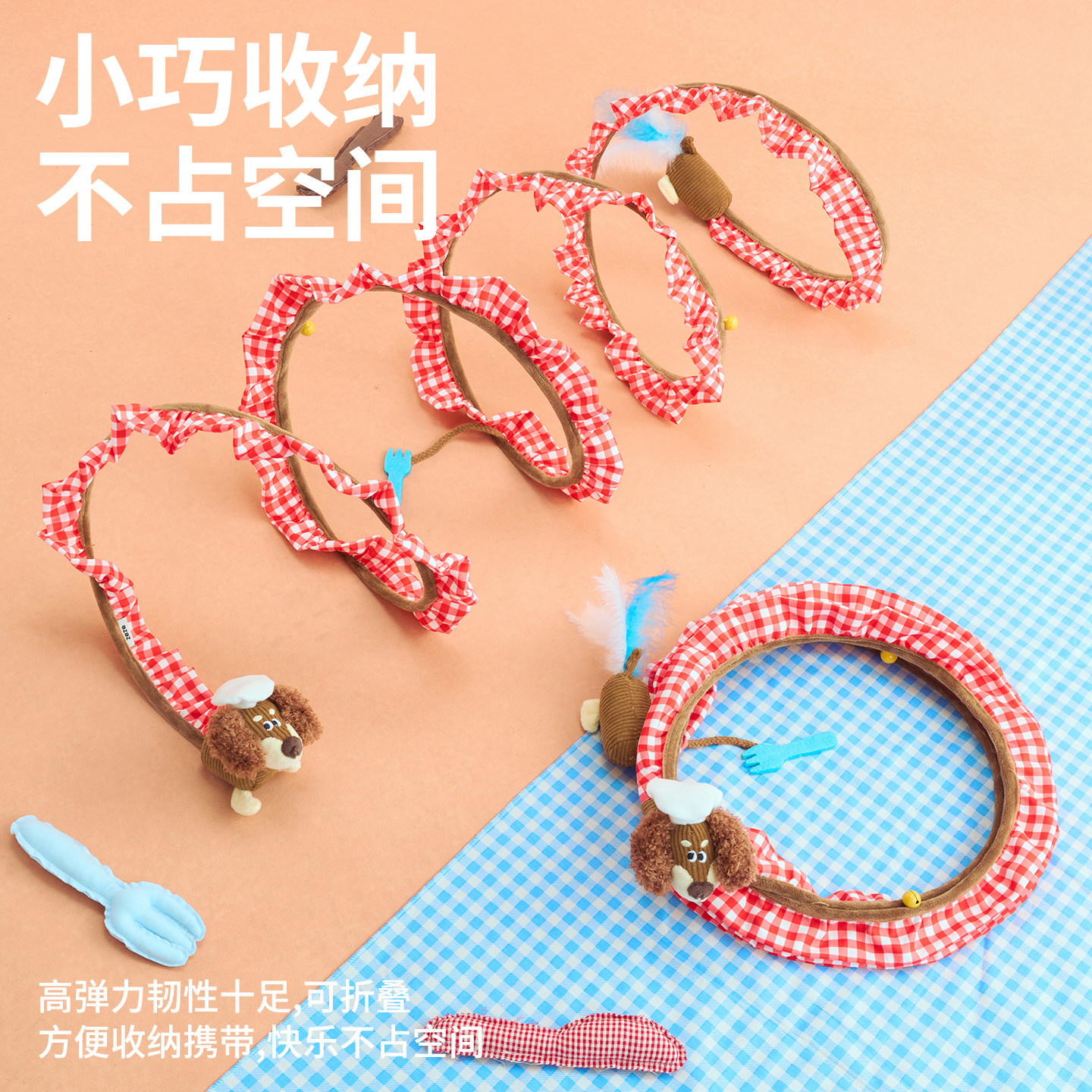 天猫zeze猫隧道弹簧玩具红格子布艺花边宠物自嗨解闷玩具躲避猫猫用品