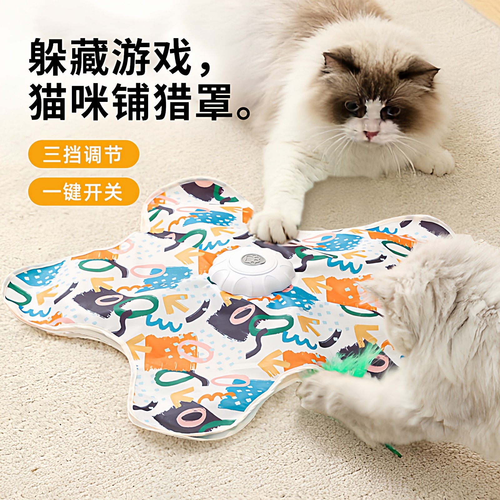 猫咪捕猎毯电动捕捉罩逗猫小玩具,专为活泼好动的小猫设计,集趣味性与运动性于一体。内置智能感应系统,可随机启动电动捕捉罩,模拟真实猎物移动,激发猫咪天生的捕猎本能。柔软安全的材质搭配隐蔽式活动机关,让猫咪在扑咬、跳跃中尽情释放精力,有效消耗体力、缓解焦虑。无需主人陪伴,猫咪可独自玩耍,是理想的解闷自嗨神器。小巧便携,适合居家使用,帮助猫咪保持身心健康,远离无聊与破坏行为,让毛孩子快乐又健康地成长。